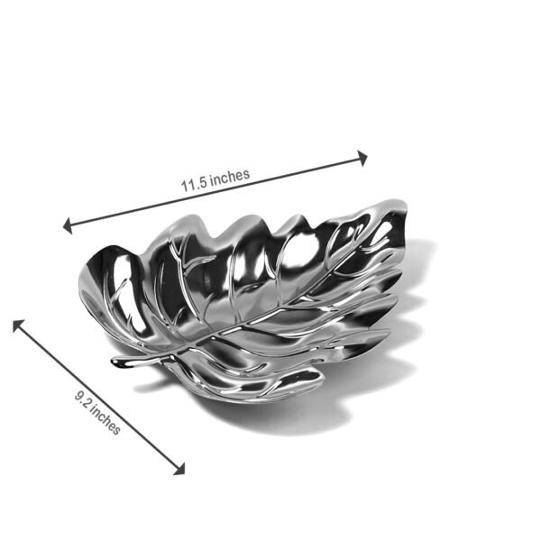 This beautiful Birch Leaf Shaped Designer Silver Bowl in the look of a leaf is a perfect and quirky addition to your serveware collection. With an elegantly carved pattern of fluted design, this unique leaf bowl is sure to charm the eyes. Its shape and appeal makes it a stylish yet uncommon piece from the silver plated bowls you’ll find in the market. Not only is this silver plated bowl perfect as a serving dish but you can also play with your creativity and put it to use as a decor piece.