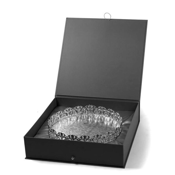 Make your celebrations all the more glorious with this Baroque Cutwork Border Round Silver Tray. This beautiful tray displays a magnificent cutwork design on its border, giving it a royal appeal. Perfect to be given as a gift to your loved ones, the round silver plated tray is the perfect blend of utility and elegance. The article can be used to serve dry fruits, chocolates, sweets and other dry delicacies. Moreover, it also serves as a classy centrepiece or home decor for tables. One can even decorate it with flowers and ornaments to enhance its sophistication as a decor element. For such usefulness, the silver platter makes for memorable Diwali gifts, wedding gifts, return gifts for guests, corporate gifts, baby shower gifts, housewarming gifts, etc.