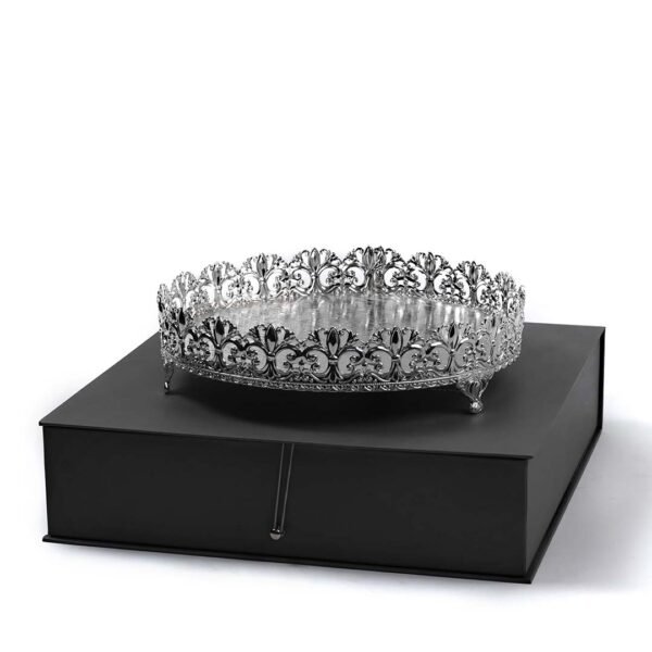 - Adorned with decorative cutwork border, this Baroque Cutwork Round Silver Tray is a gift no one would forget.