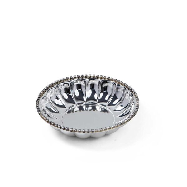 Ribbed Body Crystal Rim Silver Bowl
