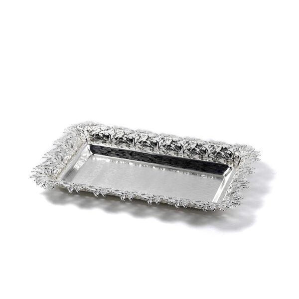 Be the first to review “Grape Leaf Cutwork Rectangle Silver Tray”