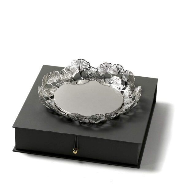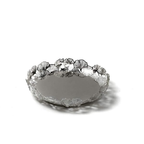 - Transform your living space and add a touch of luxury to your tablescape with MeLANgE’s Flamboyant Petals Cutwork Round Flat Silver Tray.