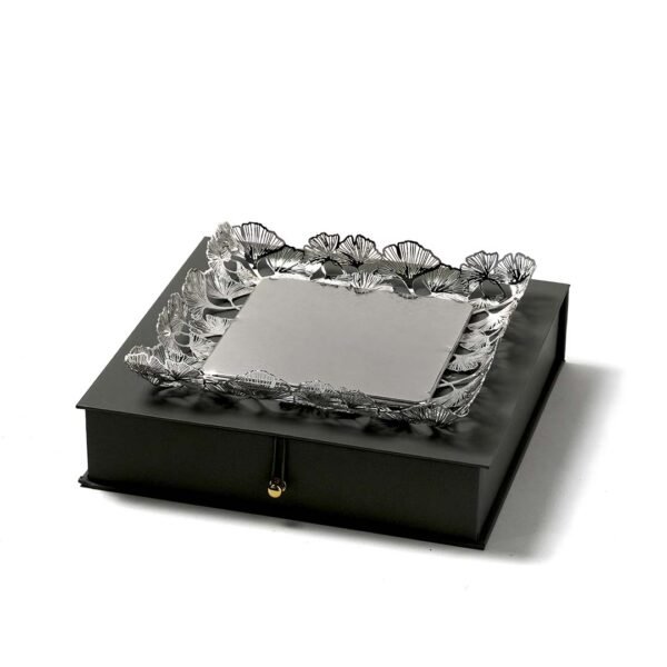 - This luxurious tray features a classic square shape with intricate petal patterns that form the border showcasing exquisite craftsmanship and timeless appeal.