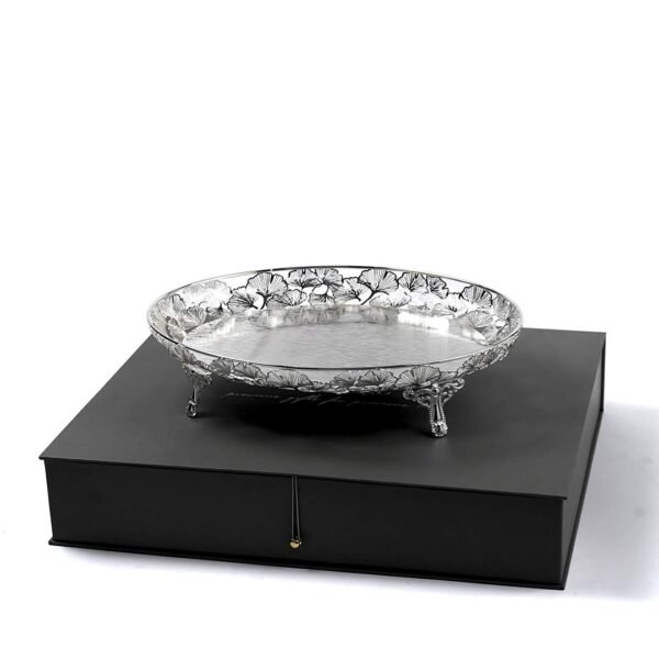 This Flamboyant Petals Oval Silver Tray with Legs is more than just a serving piece; it’s a statement of luxury and refinement, perfect for gifting on any occasion. Each silver plated serving tray is designed to leave a lasting impression, making it a cherished keepsake that recipients will treasure for years to come. The tray’s petal-inspired cutwork around the edges gives it a unique and captivating look, creating intricate patterns that catch the light beautifully. The tray’s legs, elegantly curved and supportive, add height and dimension to the piece, allowing it to stand out as a decorative element even when it’s not in use.