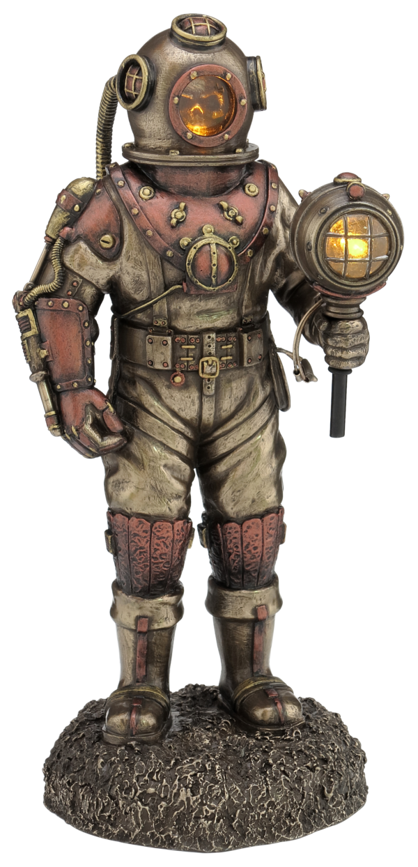 - Standing on a rustic base, this Steampunk Diver Home Decor Statue is incredibly cool.