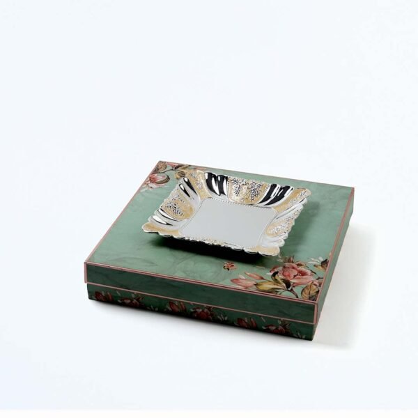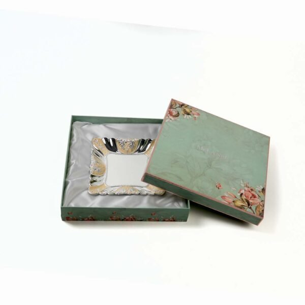 Buy this Square Enameled Silver Plate online as a gift for your close ones as Wedding Return Gifts, Corporate Gifts, Reception Gifts, Best Housewarming Gifts, Diwali gifts, Engagement Gifts, Personalized Gifts for Her, Valentine’s Day Gift, Mother’s Day Gift, Anniversary Gifts for wife and Corporate Gifts too. It is of multiple uses including Home decor and gifting purposes. Get luxury packaging that is extremely unique and classy for an exceptional first impression. We give it to you without charging you a dime. The receiver is sure to feel happy by receiving such quality and luxurious gift as this silver plate. They will surely laud with the choice of your gift.