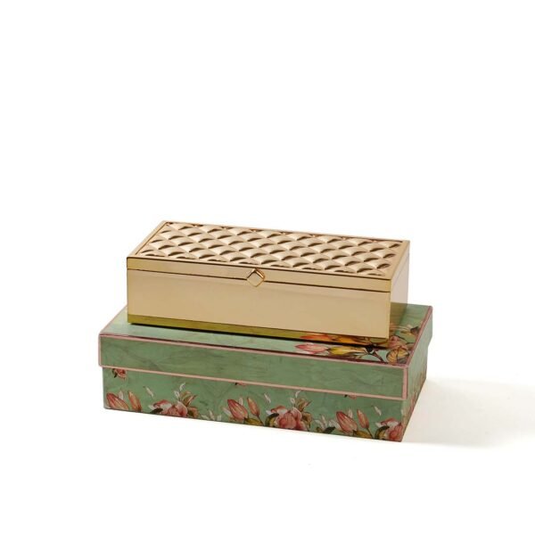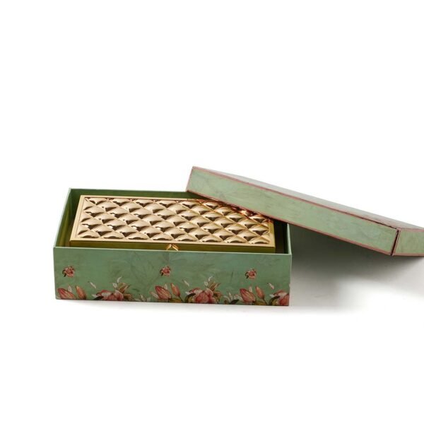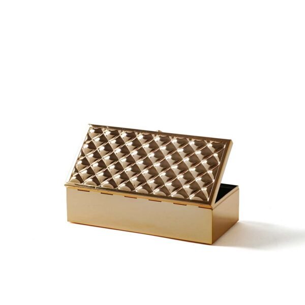 Gleaming with grandeur and textured with artistry, the 3D Puff Design Golden Box is a striking reinterpretation of classic silverware charm, dipped in a luxurious golden hue. The surface of the box showcases a 3D puffed design that feels both contemporary and royal. Each raised cushion-like curve catches the light, adding layers of depth and a subtle play of shadows that bring the piece to life. It’s a tactile experience—rich, opulent, and irresistibly refined. Whether used as décor, a keepsake box, or a statement gift, it delivers the visual impact of premium silver boxes with lids, now elevated with golden brilliance.