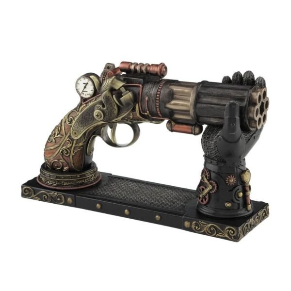 This is not a real weapon, it is a collector’s item. Any gears or gadgets on the gun are painted on and not functional. This Ultra-Cool Steampunk Quirky Home Decor Gun is ergonomically designed for a comfortable grip with absolutely no “recoil”, making it the pinnacle of steampunk technology. Minute clock with antique revolver crafted in poly resin makes a peculiar match. It is also very durable and has a supreme finish. Gift this striking showpiece on any occasion.
