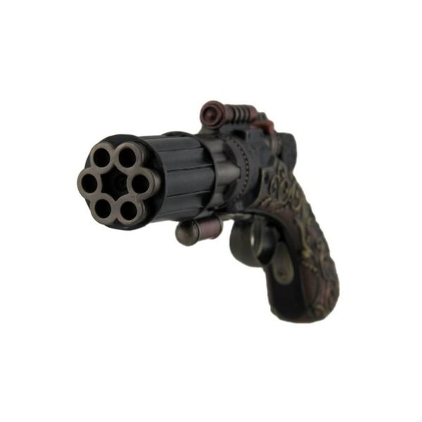 - This is a not a real weapon, it is a collector’s item. Any gears or gadgets on the gun are painted on and not functional. It is crafted of polyresin and has metallic bronze finish